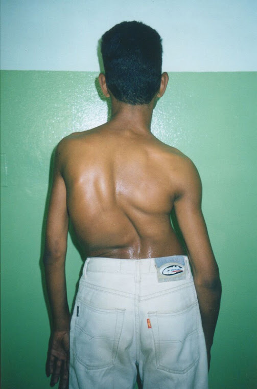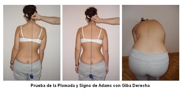 imétrica. Con el tiempo, la curvatura espinal progresa lo suficiente y puede ser reconocido fácilmente; en ese momento el valor angular se de aproximadamente 30º.Al examinar al adolescente de atrás se observa una curvatura lateral en la columna con rotación de esta deformidad se vuelve mas objetivable cuando el paciente se inclina hacia delante (maniobra de Adams).