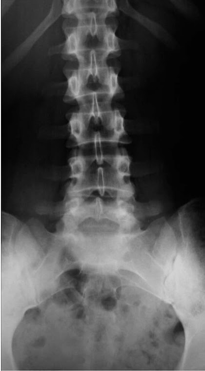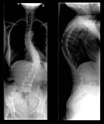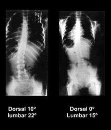 El examen radiológico, que debe incluir una radiografía de columna total T1-S1, parado y descalzo, revela una deformidad espinal más marcada de lo que se puede suponer con el examen clínico solamente.